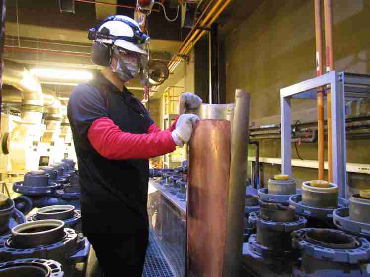 28国际将废弃物转化成有效的工业或民生原物料,,,图为废铜液淬炼后再制成纯度极高的铜管