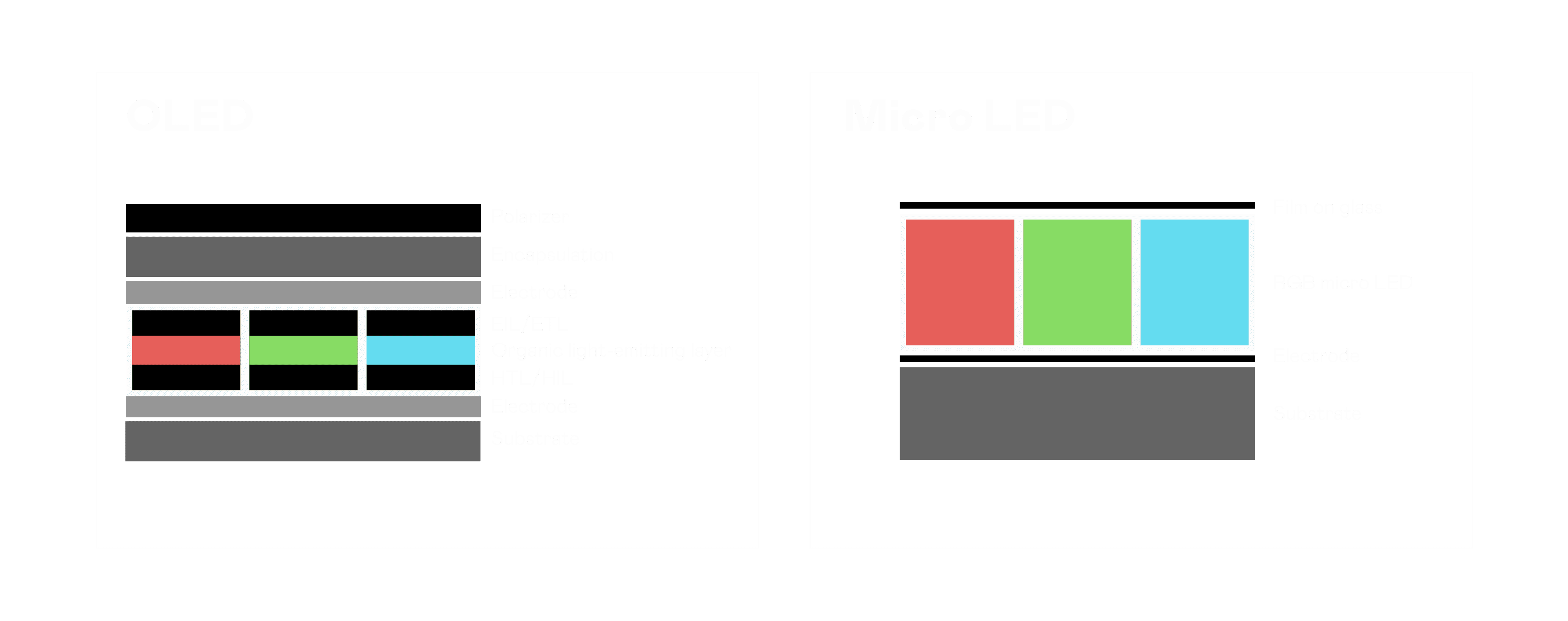 以 LED 做为显示画素,,可让 LED 的发光效率发挥到极致,,从而让显示器具备优异的亮度表现,,,,不论是在户外或室内,,均具备出众的显示效果。。。。同时,,,与使用有机材料的 OLED 相比,,LED 具备更稳定、、寿命更长的特性,,不仅不会有画面烙印问题,,,,而且更不容易出现故障、、、坏点。。
