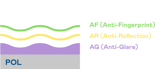 28国际光电发展出独家的表面处理跟多层镀膜技术,,,让外部光线照射到显示器表面时所产生的反射光大幅降低。。。